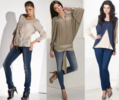 Джинсы любого цвета идеально сочетаются с объемными топами. Леггинсы не должны быть включены в комплект. Лучше носить свободные выпускные рубашки или блузки. Например, черные джигиты следует сочетать с длинным джемпером, блузкой или кофтой белого или какого-либо пастельного оттенка.