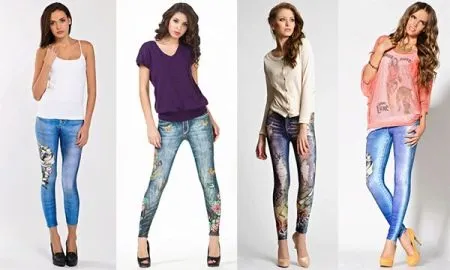 Джинсы, имитирующие джинсы, выпускаются разных цветов, что дает девушкам свободу выбора и возможность сочетать их с разными оттенками одежды. Несомненно, выбор цвета одежды в дизайне — для сугубо индивидуального, но гармоничного образа, не обязательно прислушиваться к рекомендациям дизайнера.