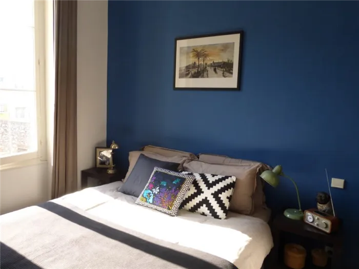 Покраска двери или пары дверей в синей рамке в синий цвет придаст белой стене совершенно новый свет. Сочетание матовых и глянцевых оттенков индиго может создать неповторимую атмосферу в вашем доме.